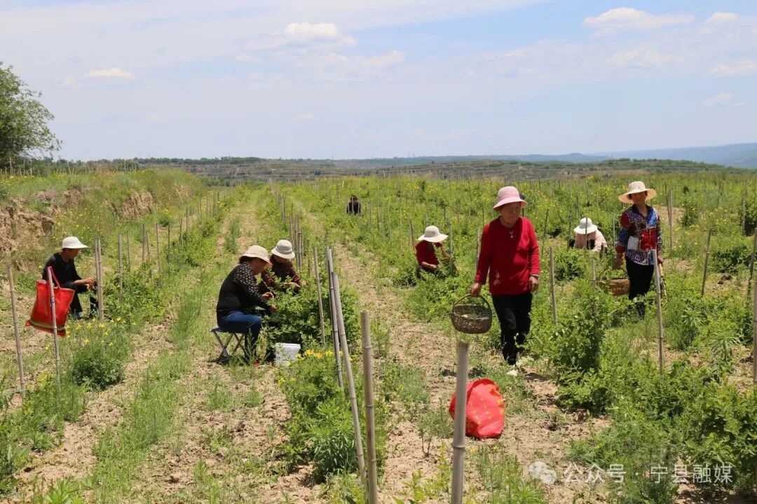 寧縣春榮鎮村民正在采摘金銀花 張偉攝