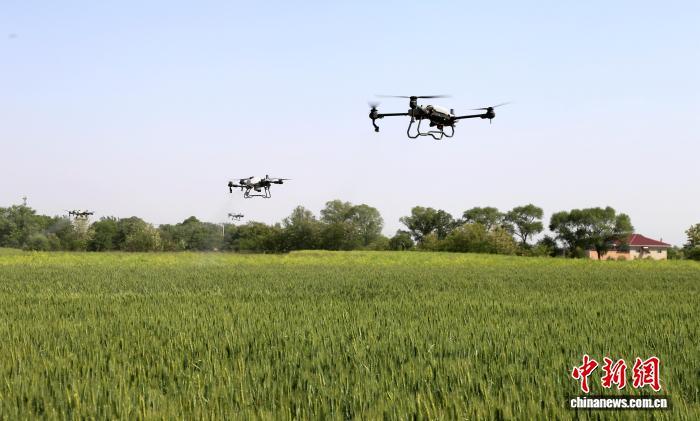 植保無人機(jī)噴施葉面肥。(資料圖)西峰區(qū)融媒體中心供圖