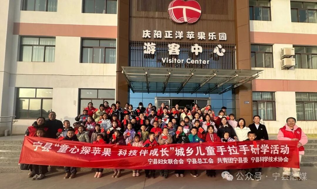 1月28日,寧縣婦女聯(lián)合會聯(lián)合縣總工會、團縣委、縣科協(xié),在中村鎮(zhèn)慶陽正洋現(xiàn)代生態(tài)農(nóng)業(yè)科技有限公司舉辦了“童心探蘋果·科技伴成長”城鄉(xiāng)兒童手拉手主題研學(xué)活動,來自馬坪社區(qū)及中村鎮(zhèn)共計70余名兒童參與活動。