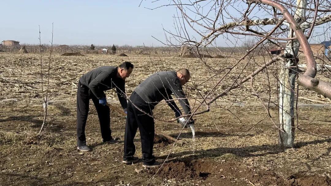 隨著氣溫穩步回升,全縣各類果樹也陸續進入萌芽管理關鍵期,廣大果農搶抓有利時期,積極投入到春季施肥工作中,永正鎮東龍頭村的果農溫萬華正組織人員在果園中忙碌。“今年節氣早,墑情也好,我們得趕緊把萌芽肥施下去。這一遍肥料很關鍵,能有效促進果樹開花,提高今年的坐果率,為結出優質大果打好基礎。”他一邊勞作一邊對記者說。
