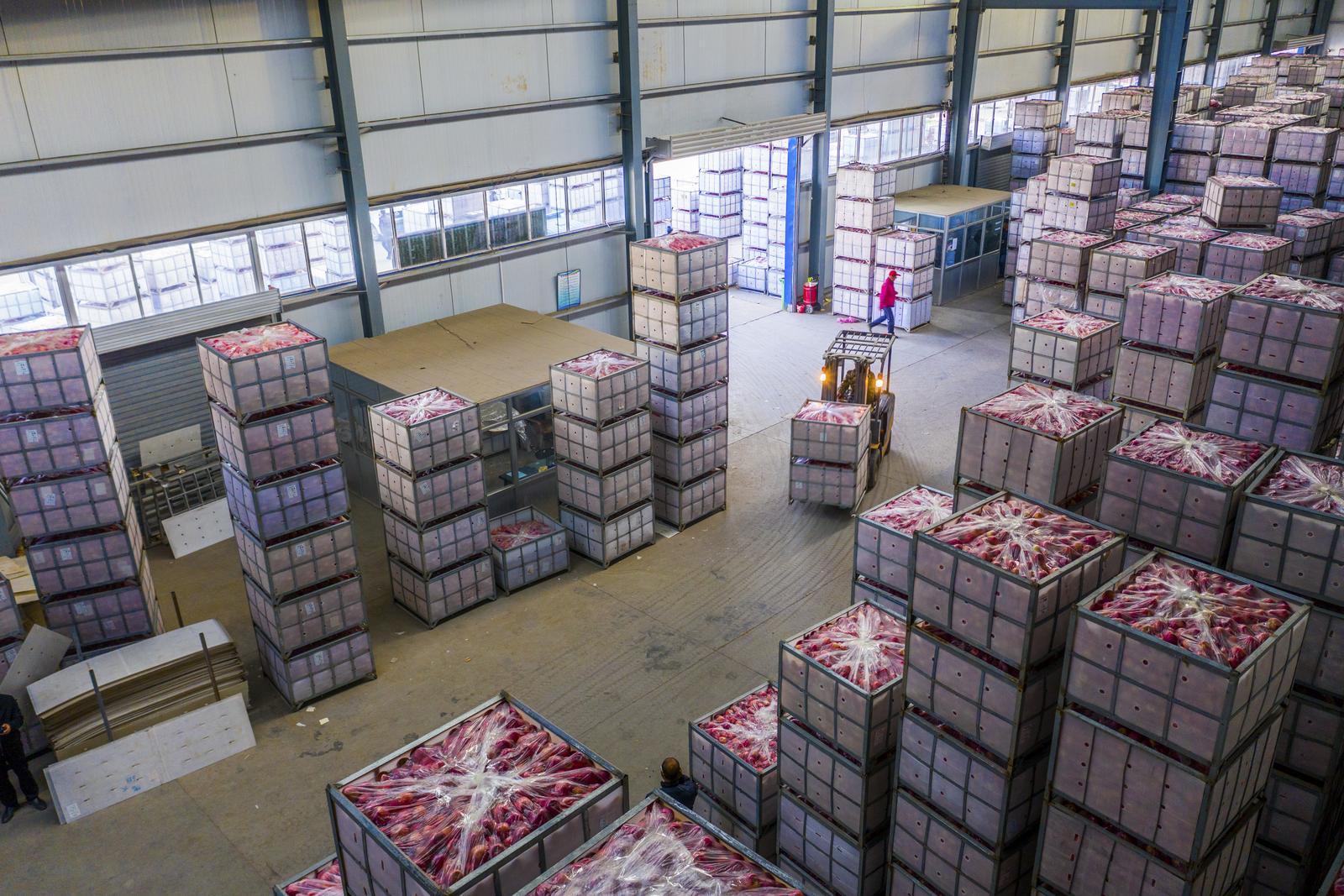 在白馬鋪鎮金誠果蔬有限公司,法國進口智能化分選線每小時可分選2000公斤蘋果,20多項指標精準檢測,將蘋果劃分為16個等級;5000多噸冷藏氣調庫實現鮮果24小時預冷,貨架期最長可達一年,企業免費為果農分選蘋果上萬噸,助力增收20%。截至目前,全縣培育果品企業36家、合作組織141家,蘋果貯藏能力達13萬噸,包裝加工能力達9萬噸,大掌柜果庫、萬匯農業等企業成為產業發展的中堅力量。