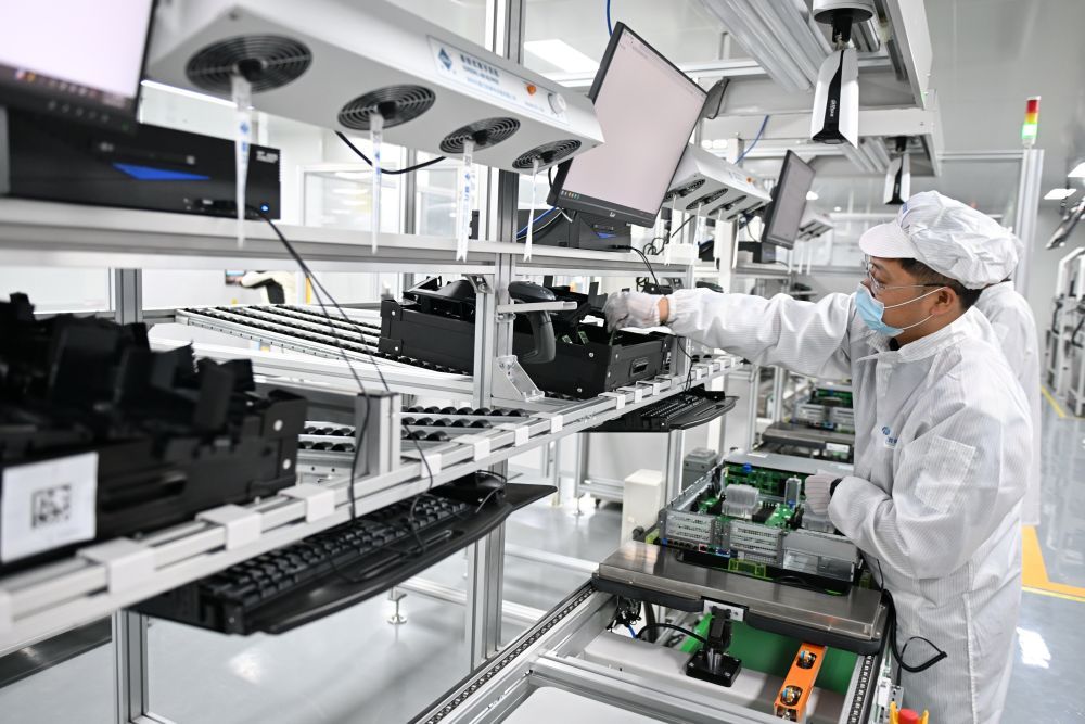 2026年3月11日,在雄安科創中心中試基地,雄安百信信息科技有限公司工人在服務器生產線上工作。