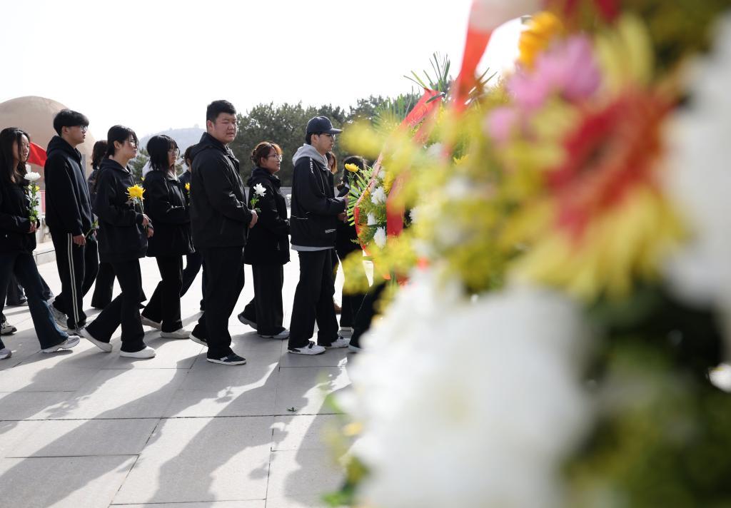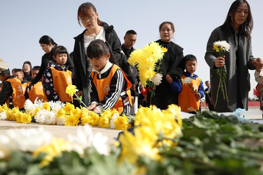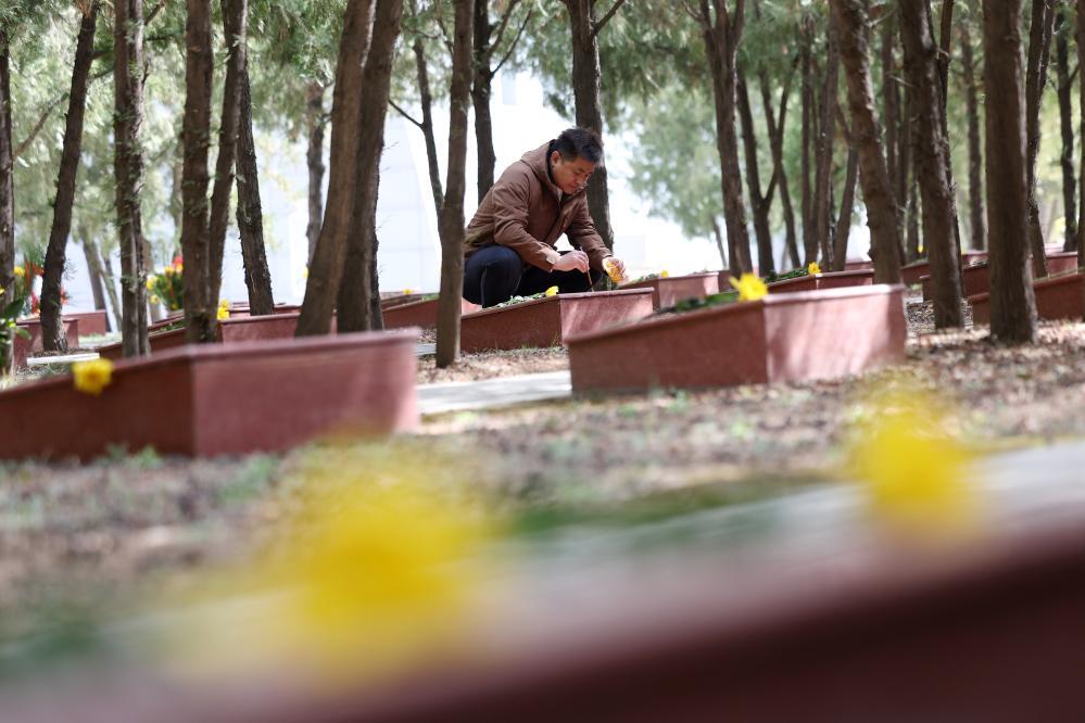 4月3日,人們?cè)谔m州市烈士陵園緬懷先烈、敬獻(xiàn)鮮花。新華社記者 陳斌 攝