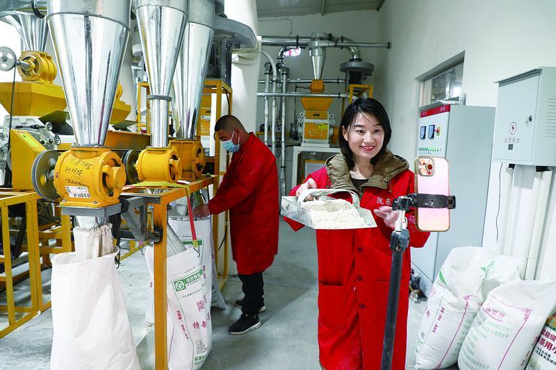 助農主播孫玲玲直播賣蕎面。