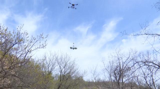 近日,在段家集鄉(xiāng)的造林基地,造林工人們正忙著將油松樹(shù)苗固定在無(wú)人機(jī)掛鉤上。隨著飛手精準(zhǔn)操控,滿載苗木的無(wú)人機(jī)沿著預(yù)設(shè)航線穿梭于溝壑之間,短短幾分鐘就將樹(shù)苗精準(zhǔn)投送至種植點(diǎn),成為科技與生態(tài)深度融合的生動(dòng)寫(xiě)照。
